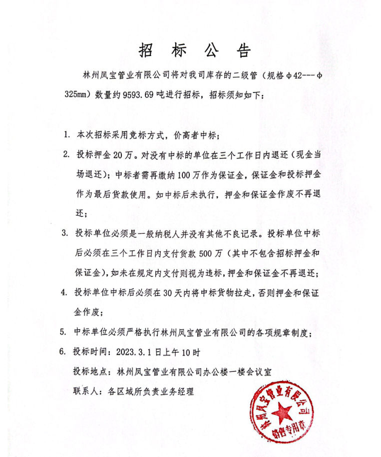 林州凤宝管业有限公司二级管招标公告